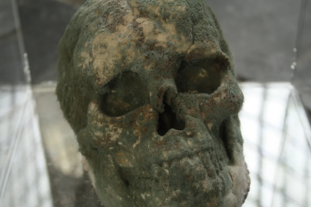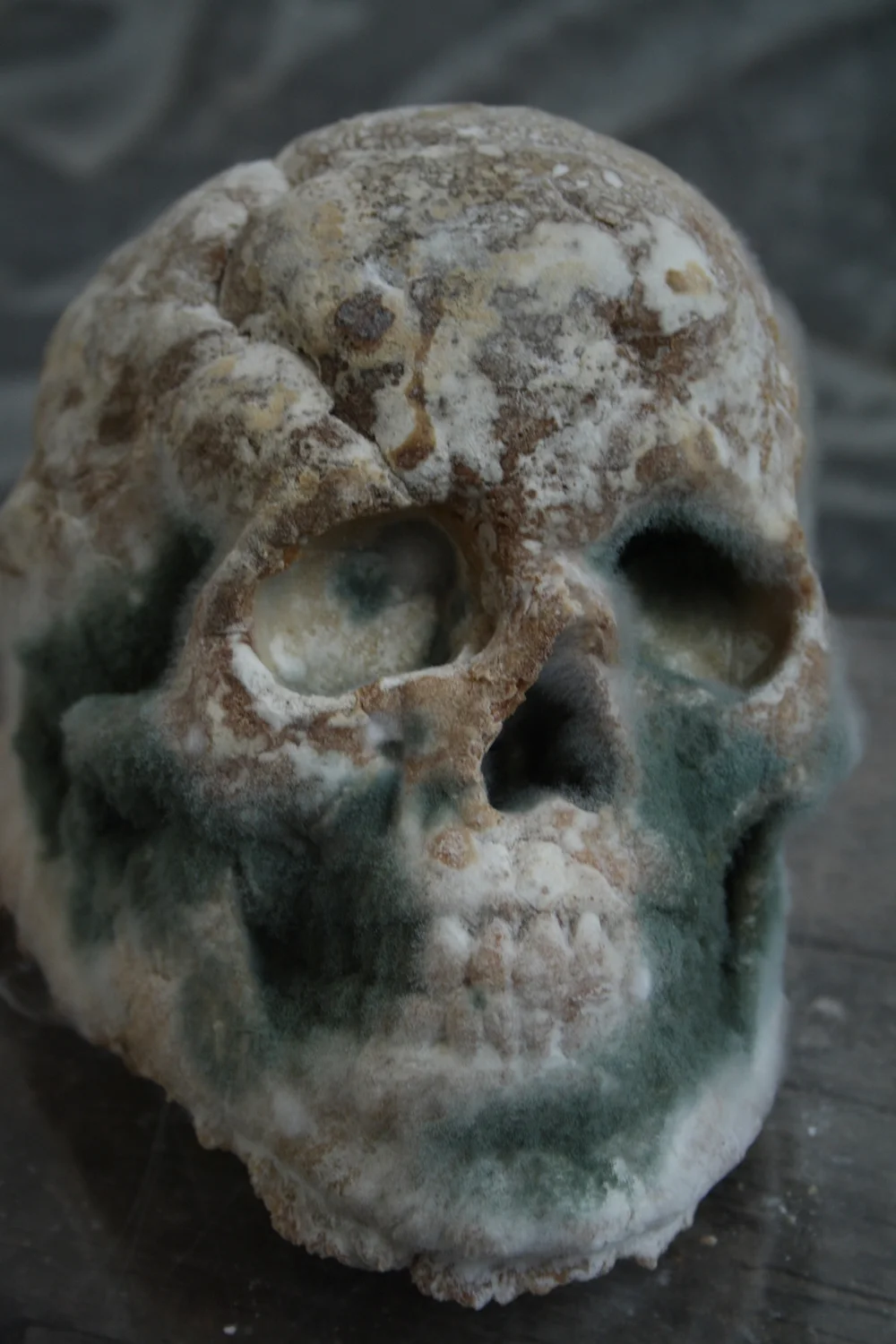I worked the tumults of my skulls, slaves so tired of representing the Vanitas, with the powerful pictorial sensibility of mould.